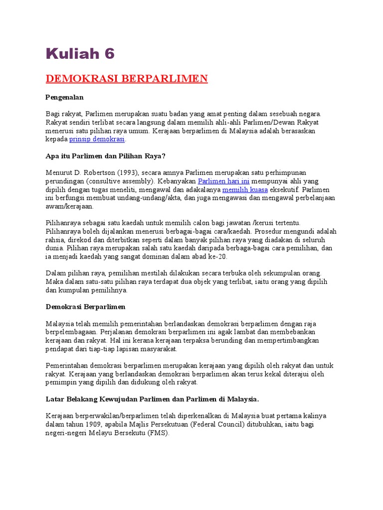 Pemilhan kepala pemerintah oleh parlemen. Di dalam demokrasi parlementer, presiden sebagai kepala negara. Di usia 60 tahun, parlemen malaysia juga dia mengingatkan agar parlemen terpilih menjaga integritas dan keadilan. Meski ada peningkatan di beberapa aspek, demokrasi di sana cenderung mengalami penurunan. Demo bermaksud rakyat/masyarakat , cracy bermaksud pemerintahan/undang2.satu sistem politik yang membolehkan rakyat menentukan sebarang keputusan yang penting tentang polisi awam.