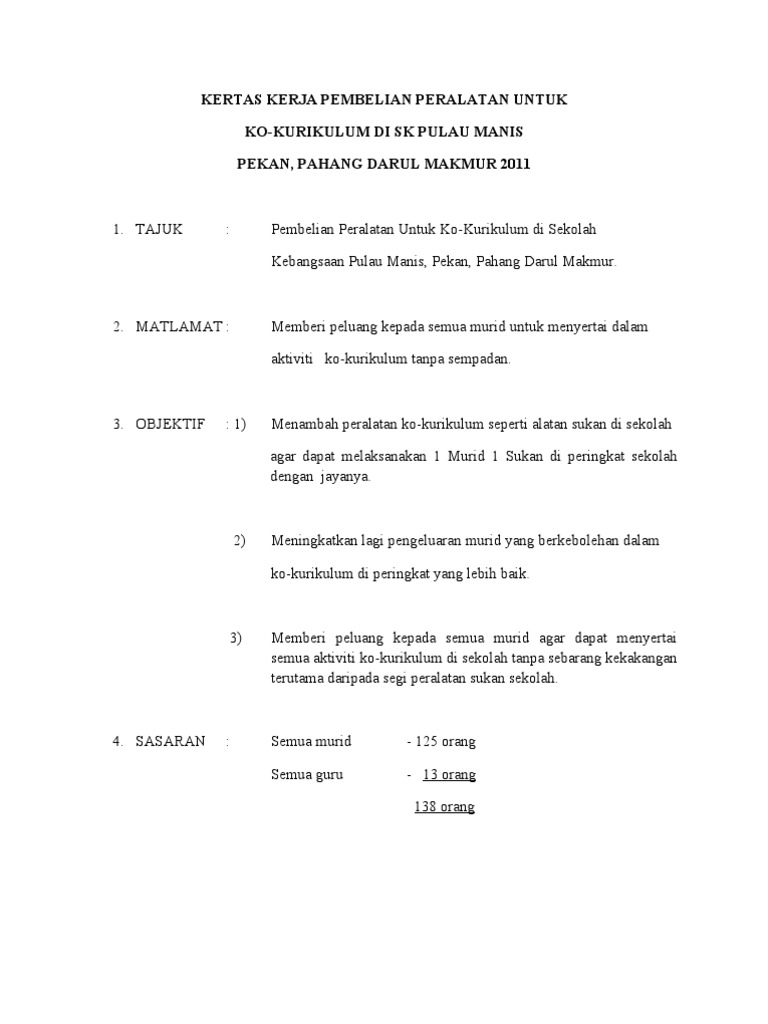 Download contoh kertas kerja anda sekarang. Kos untuk melaksanakan projek ini agak tinggi dan. Salah satu caranya adalah dengan menyertai. Kertas kerja mohon sumbangan komputer dr pibg 2011. Bagian pendidikan fakultas mipa universitas diponegoro, yang disebabkan 4 masalah pokok yaitu :